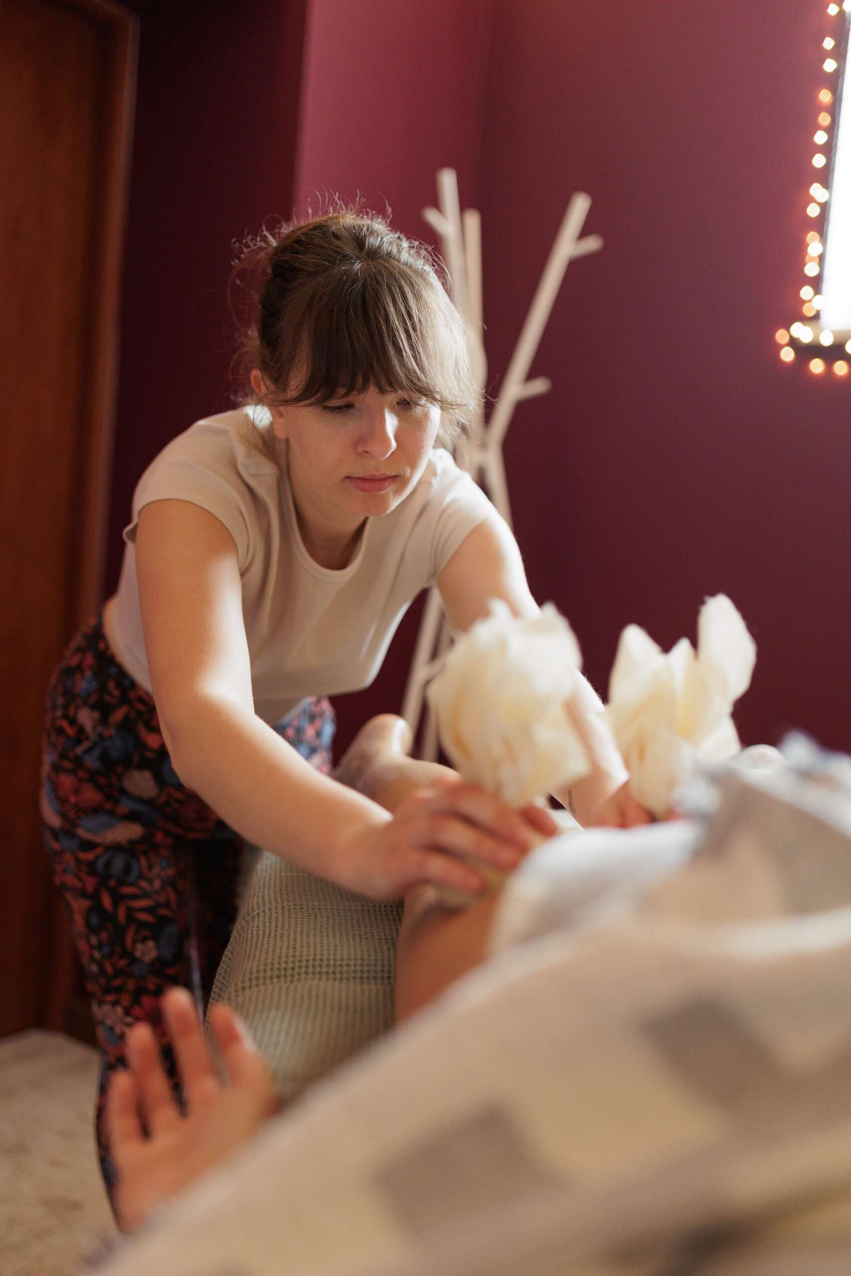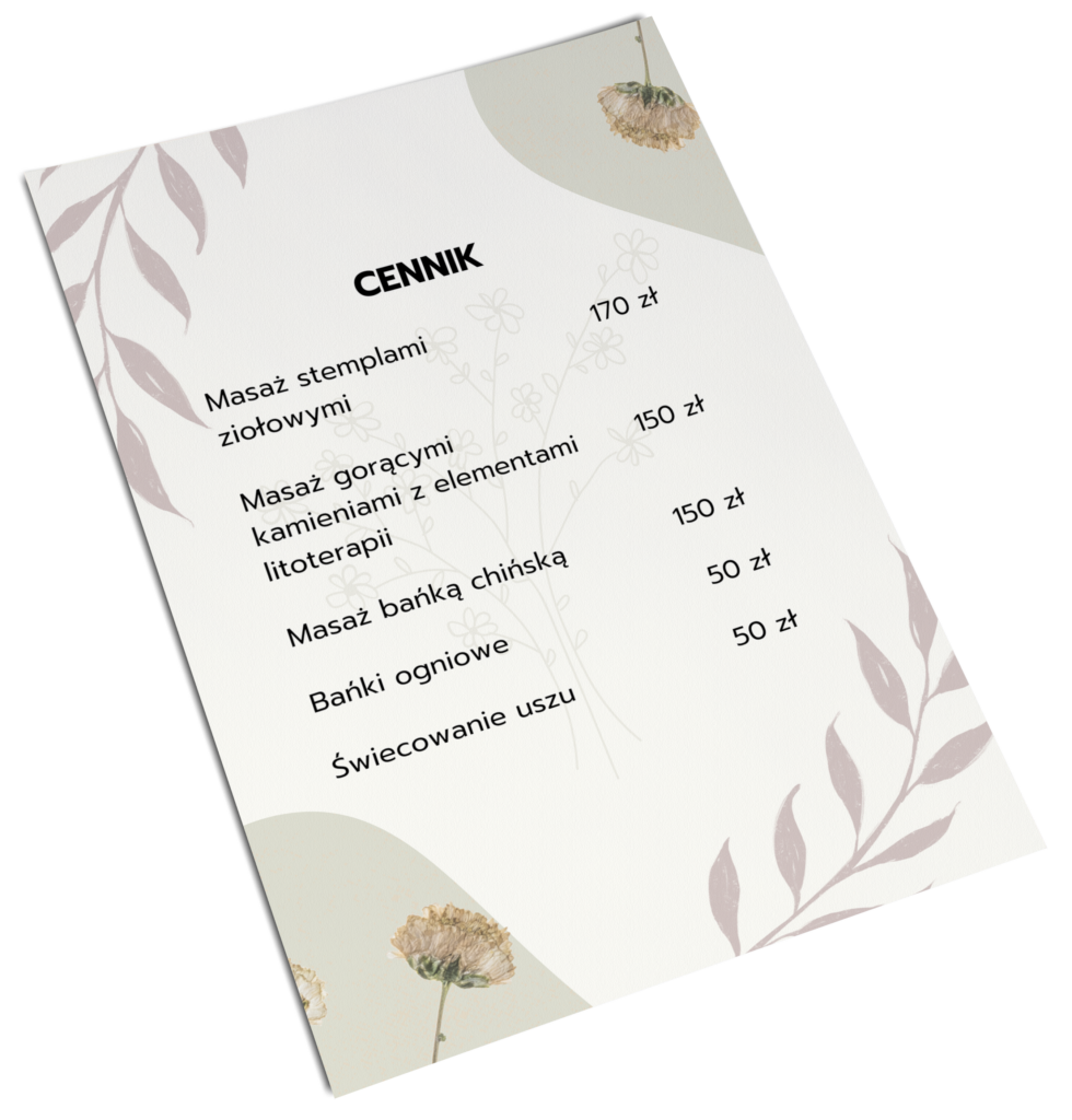 W swojej pracy łączę elementy masażu z aromaterapią, ziołolecznictwem i litoterapią, a także stosuję muzyko i koloroterapię. Łączenie tych różnorodnych elementów może prowadzić do holistycznego doświadczenia, które wspiera zarówno fizyczne, jak i emocjonalne aspekty zdrowia i dobrostanu.